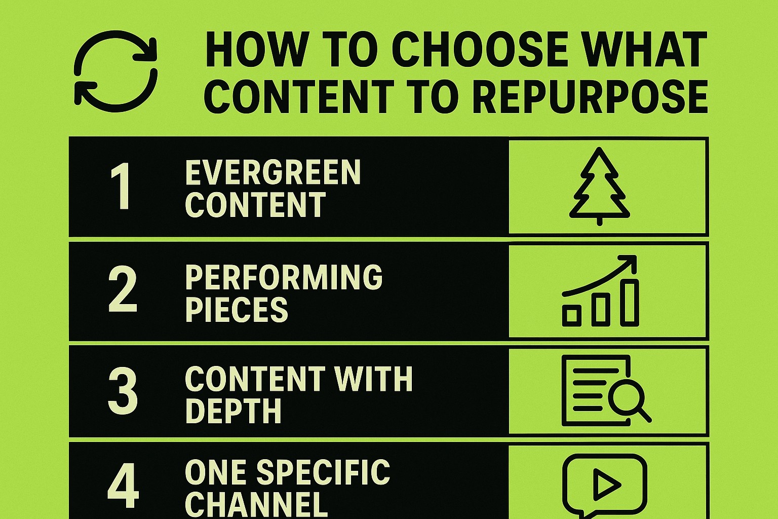 يجب أن تتوافق قراراتك المتعلقة بإعادة استخدام المحتوى مع أولوياتك. إذا كان نمو محركات البحث (SEO) هو الأهم، فحوّل المحتوى عالي القيمة إلى مقالات سهلة البحث. إذا كان تركيزك منصبًا على الوصول إلى وسائل التواصل الاجتماعي، فاستخرج الأفكار التي تعمل بشكل جيد كمنشورات أو مقاطع فيديو قصيرة. إن مواءمة المحتوى مع أهدافك تحافظ على تركيز جهودك وتأثيرها.