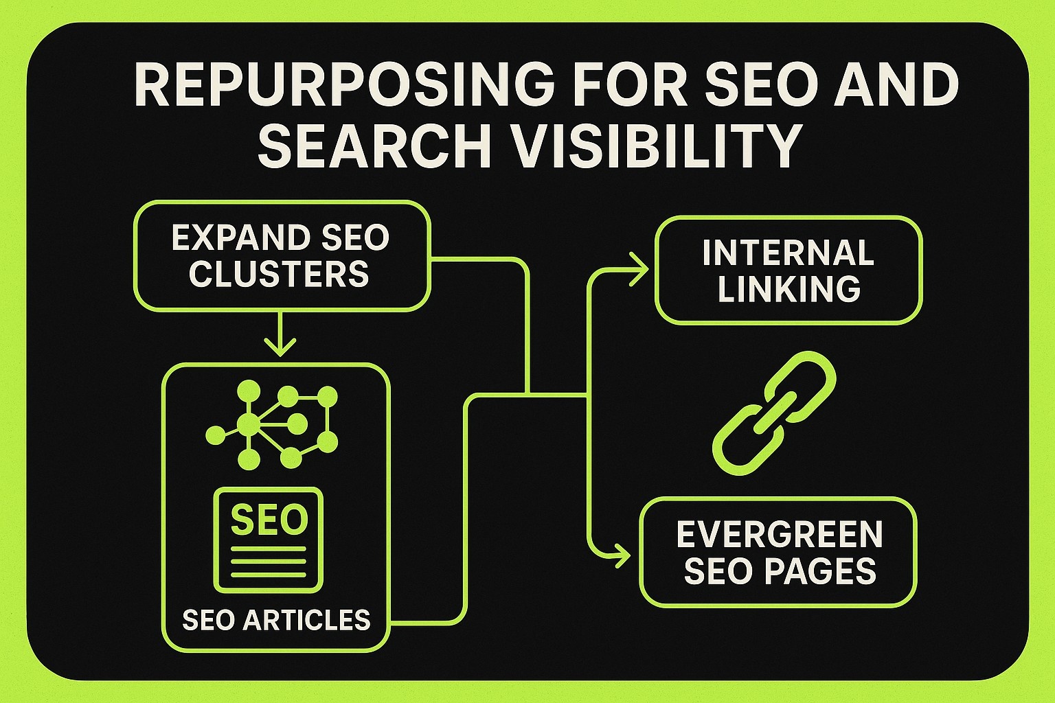 إعادة الاستخدام لا تقتصر على التوزيع فقط. عندما تتعامل معها بعناية، يمكن أن تعزز وجودك في محركات البحث بشكل كبير. العديد من الأفكار التي تبدأ كفيديوهات أو منشورات على مواقع التواصل الاجتماعي أو تقارير يمكن أن تصبح أصولًا سهلة البحث تساعدك على بناء رؤية طويلة المدى. فيما يلي بعض الطرق العملية لاستخدام إعادة الاستخدام لتعزيز تحسين محركات البحث.