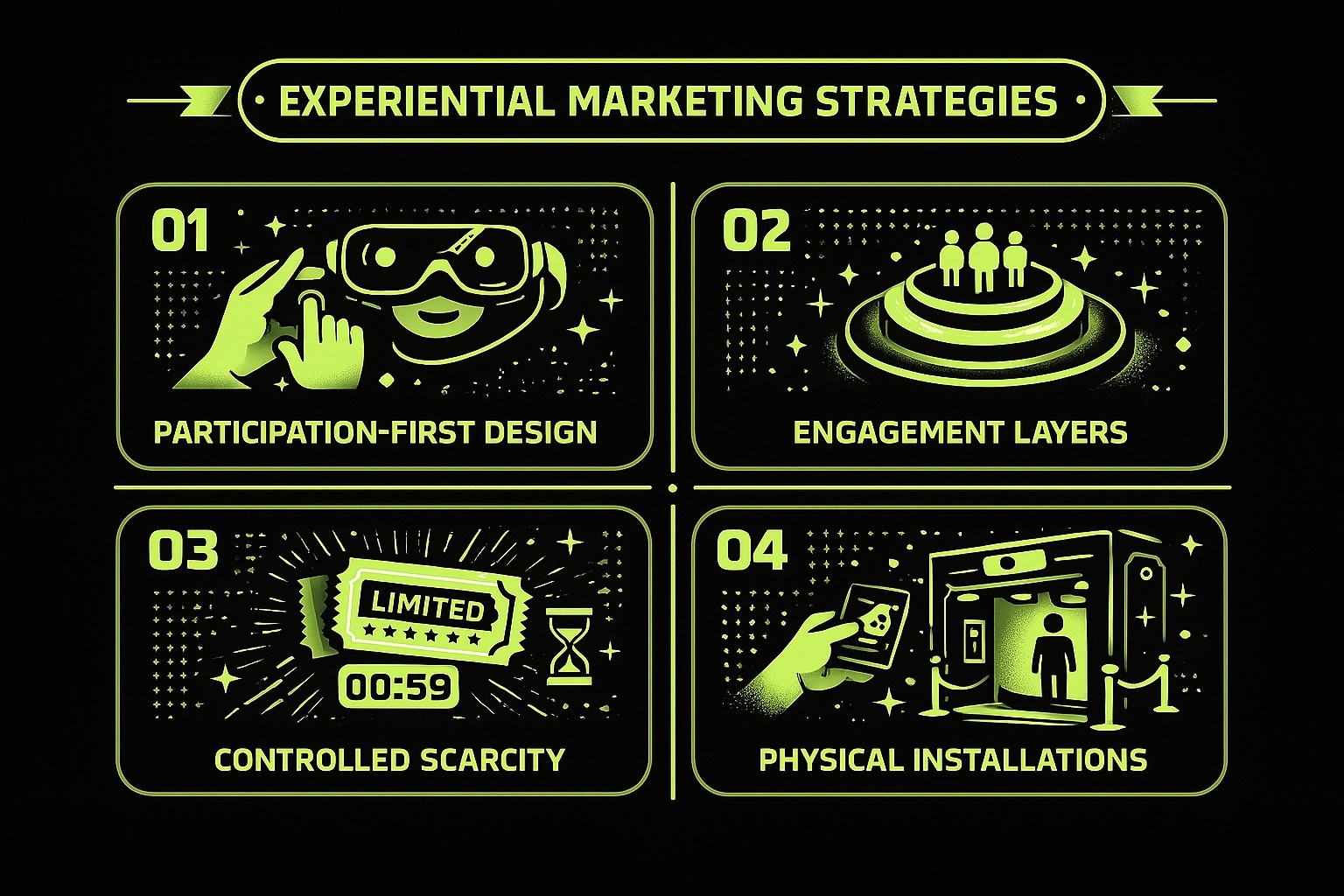 تطور التسويق التجريبي ليصبح مزيجًا منظمًا من التواجد المادي والامتداد الرقمي والمشاركة القابلة للقياس. الاستراتيجيات التالية هي تلك التي تظهر باستمرار في الحملات التي تؤثر فعليًا على الوعي والاعتبار والإيرادات – وليس فقط على الإعجابات على Instagram.