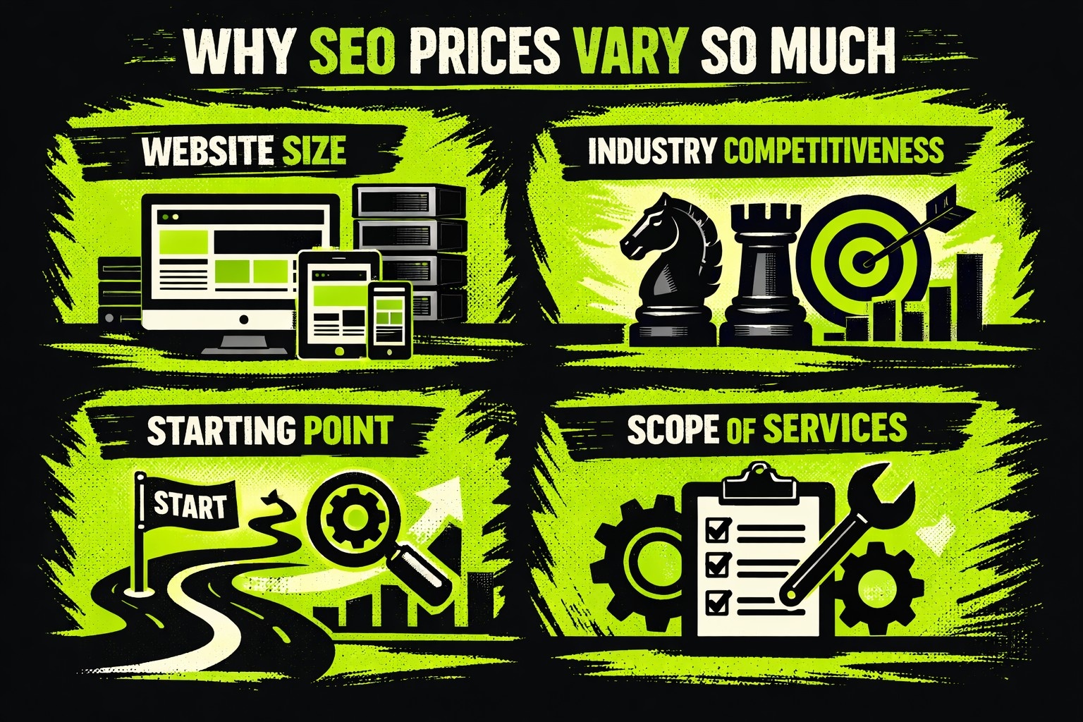 إذا كنت قد بحثت عن أسعار تحسين محركات البحث، فربما لاحظت شيئًا واحدًا محبطًا: الأرقام في كل مكان. فإحدى الوكالات تعرض سعر $800 في الشهر، بينما تطلب وكالة أخرى $8000، وكلاهما يعدك بـ “نتائج رائعة”.”