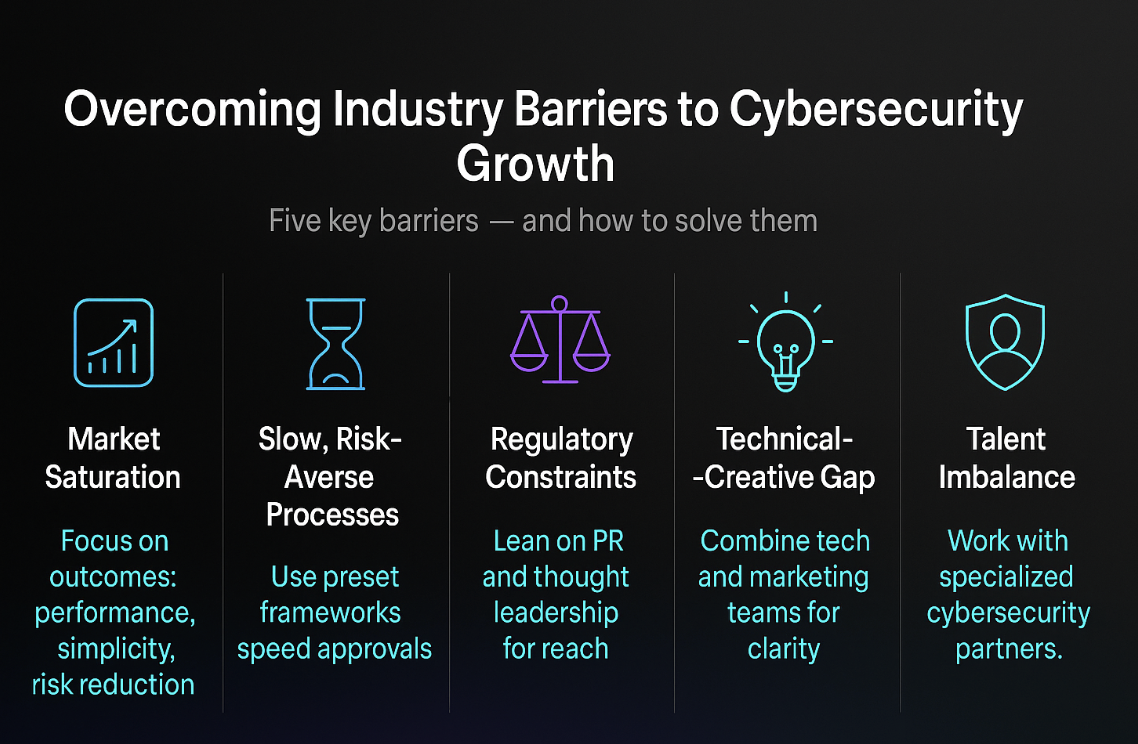يتطلب التغلب على هذه العوائق انضباطًا تشغيليًا بقدر ما يتطلب مهارة إبداعية. إن العلامات التجارية للأمن السيبراني التي تعمل على حل المشكلات الهيكلية (سرعة الموافقة، ووضوح الرسالة، والقدرة على التكيف) تضع نفسها في وضع يجعل كل جهد استراتيجي يتبع ذلك أكثر فعالية.