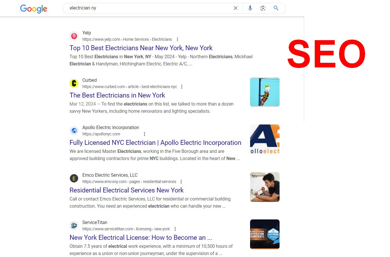 يستلزم تحسين محركات البحث (SEO) تحسين موقع الويب الخاص بالخدمة الكهربائية لتحسين تصنيفات محرك البحث. عندما يبحث المستخدمون عن كلمات رئيسية، فإنهم يطرحون الأسئلة بشكل أساسي. الصفحات التي تقدم إجابات أفضل، ويتم تحميلها بشكل أسرع، وتعمل بشكل آمن، يتم تفضيلها بواسطة محركات البحث وتحتل مرتبة أعلى. ونتيجة لذلك، يظهر موقع الويب الخاص بك في أعلى نتائج البحث، مما يؤدي إلى جذب عدد كبير من الزيارات العضوية. كما تقول خبيرة تحسين محركات البحث آنا كرو على نحو مناسب: