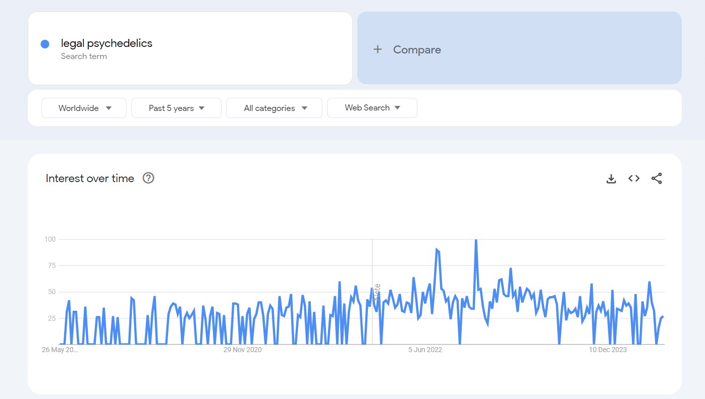 يوفر تقييم الطلب على البحث بمرور الوقت مزيدًا من الأفكار حول اتجاهات الصناعة. توضح بيانات Google Trends الاهتمام المتزايد بـ "المخدرات القانونية" على مدى السنوات الخمس الماضية. يشير هذا الاتجاه التصاعدي إلى أنه مع سعي المزيد من الأشخاص للحصول على معلومات حول هذا الموضوع، يصبح من الأهمية بمكان بالنسبة لشركة Lengreo أن تستحوذ على هذا الاهتمام المتزايد، وبالتالي جذب المزيد من الزيارات إلى موقعهم.