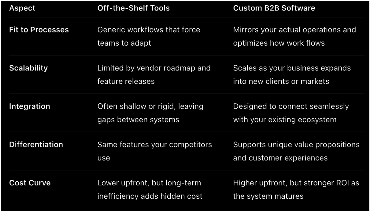 Je länger diese Probleme andauern, desto kostspieliger werden sie - nicht nur in Form von verschwendeter Zeit, sondern auch in Form von verlorenem Vertrauen. Für B2B-Unternehmen ist das eine kritische Schwelle. Wenn die Systeme, die das Wachstum unterstützen sollen, beginnen, es zu behindern, ist der nächste logische Schritt, über Standardtools hinauszugehen und in Lösungen zu investieren, die genau auf Ihr Unternehmen zugeschnitten sind.