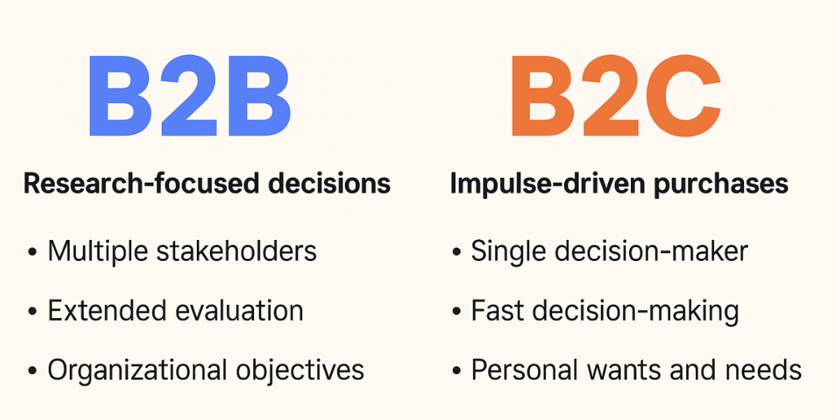 B2B-SEO bewegt sich in einem grundlegend anderen Umfeld als B2C-Marketing. Verbraucherorientierte Strategien setzen oft auf schnelle Entscheidungen und Impulskäufe, aber B2B-Käufer verhalten sich nicht so. Sie stöbern nicht, sie recherchieren.