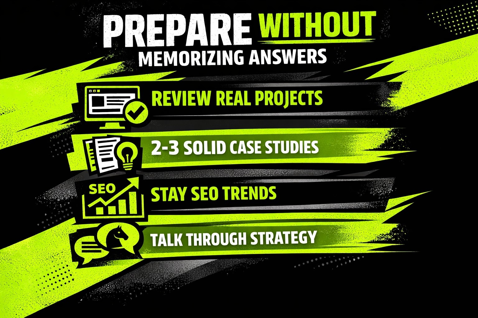 No se base en teorías. Repasa tu trabajo real de SEO y siéntete cómodo explicando lo que hiciste y por qué era importante.