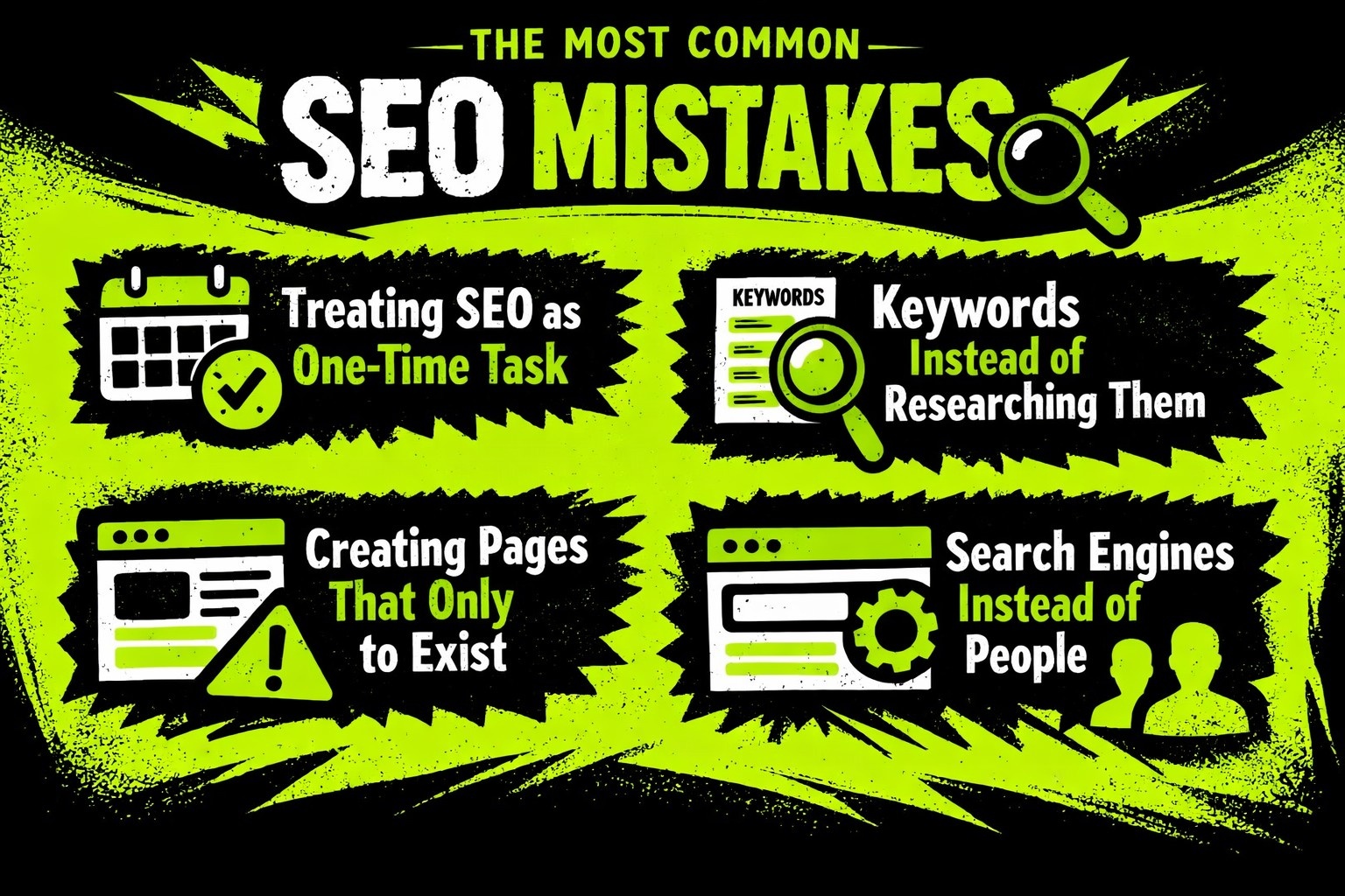 Understanding where SEO usually goes wrong is the first step toward making it work. The mistakes below are not edge cases. They are patterns that show up across industries, budgets, and experience levels. Fixing them does not require tricks or insider knowledge. It requires clarity, restraint, and a focus on what actually moves the business forward.